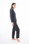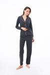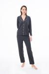 Antrasit Önden Düğmeli Pamuklu Kadın Pijama Takımı