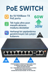 PoE Güç Çıkışı | Port 4 & 8: 60W, diğer portlar: 30W |