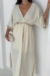 Anvelop Yaka Pullu Elbise. Modern ve zarif anvelop yaka kesimiyle feminen bir duruş sunarken, ışıltılı pul detaylarıyla her ortamda parlamanızı sağlar.