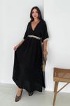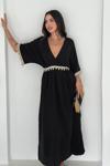 Anvelop Yaka Pullu Elbise. Modern ve zarif anvelop yaka kesimiyle feminen bir duruş sunarken, ışıltılı pul detaylarıyla her ortamda parlamanızı sağlar.