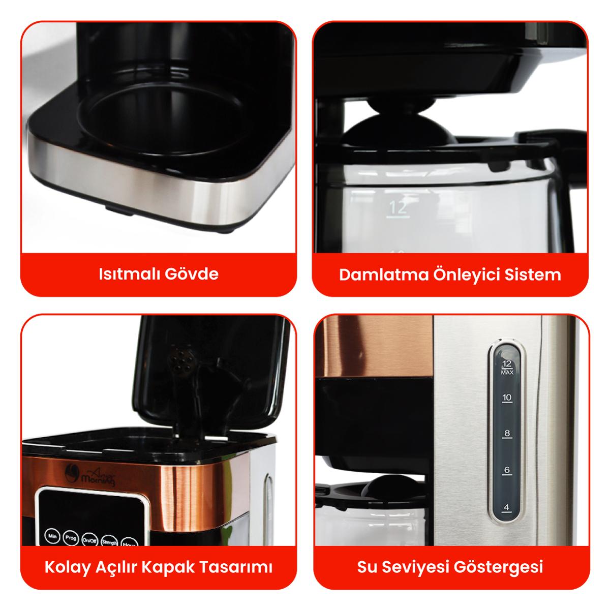 Any Morning SH21615S LCD Dokunmatik Kontrol Panelli Aroma ve Zaman Ayarlı Programlanabilir Filtre Kahve Makinesi Bakır