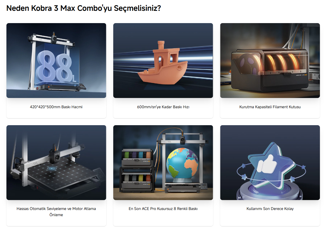 Çok Renkli Baskı:Kobra 3 Max Combo, Anycubic’in geliştirdiği Color Engine Pro modülüyle birlikte gelir.