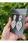 Kristal taş kullanımı sayesinde, bu gelin küpesi parıltısıyla göz alıcı bir görünüm sunar
