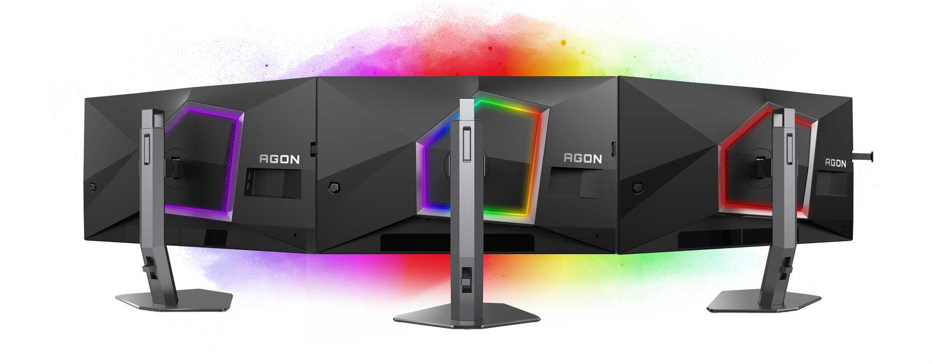 Maksimum sürükleyicilik: AOC monitörlerimiz, oyun kurulumunuzu çeşitli renklerde aydınlatan cihazın arkasında özel bir aydınlatmaya sahiptir. İstediğiniz rengi seçin, diğer AOC cihazlarınızla senkronize edin ve farklı ışık desenlerini test edin.