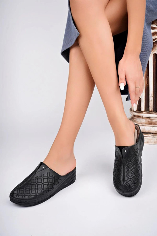Apella 4105 Ortopedik Önü Kapalı Kare Nakışlı Günlük Kadın Terlik