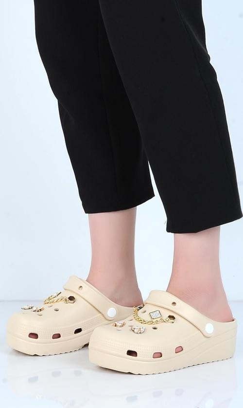 E800-6 Fiesta Bej Eva Kadın Taşlı Günlük Terlik