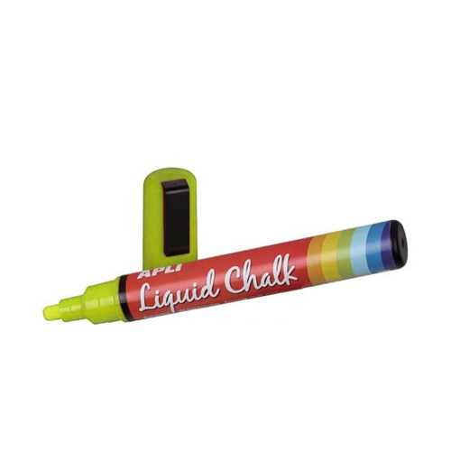 Apli Likit Tebeşir Kalemi 5.5 mm, yuvarlak uçlu yapısı ve canlı yazım performansıyla cam, tahta ve diğer pürüzsüz yüzeylerde net sonuçlar sunar. Su bazlı formülü sayesinde kullanımı pratik ve güvenlidir.