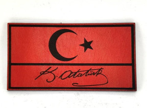Bayrak Kemal Atatürk İmzalı Deri PEÇ - Arma - Askeri Patch