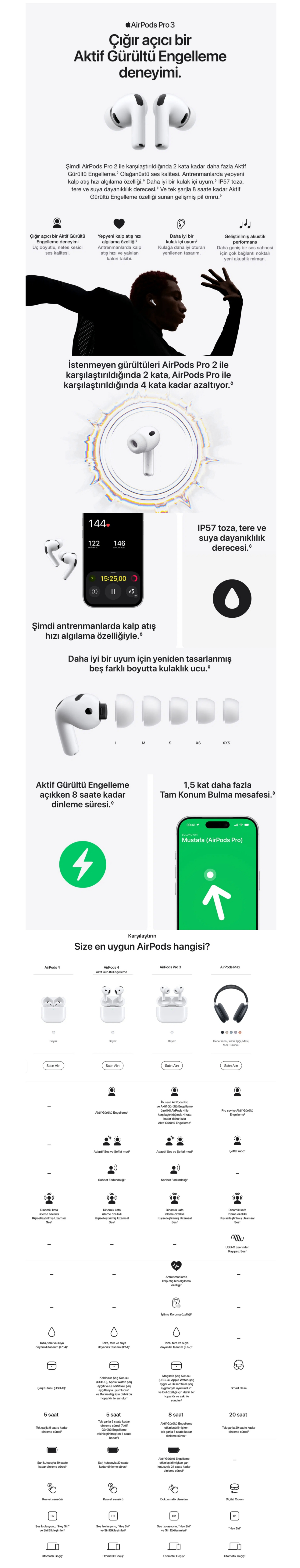 Apple Airpods Pro 3 Bluetooth Kulak İçi Kulaklık MFHP4TU/A