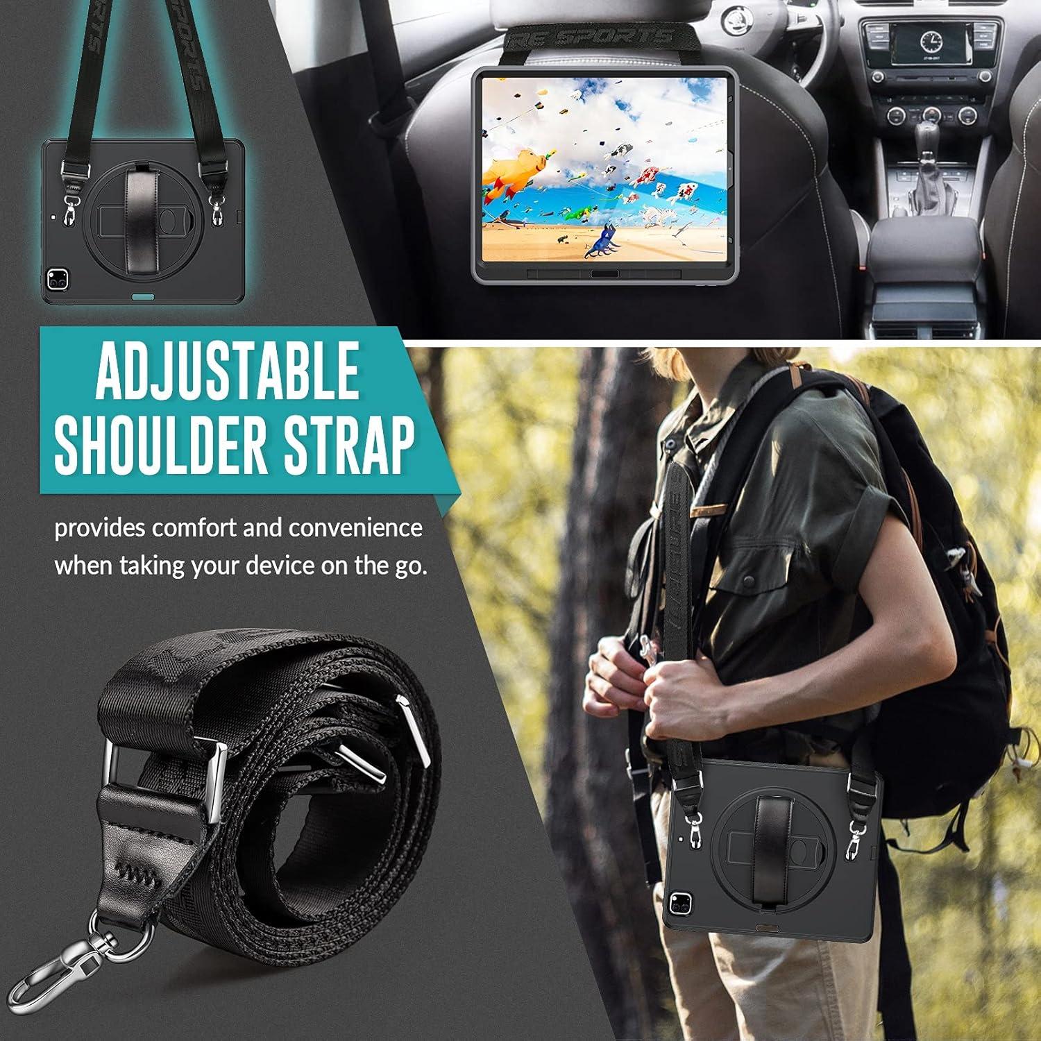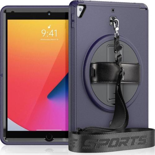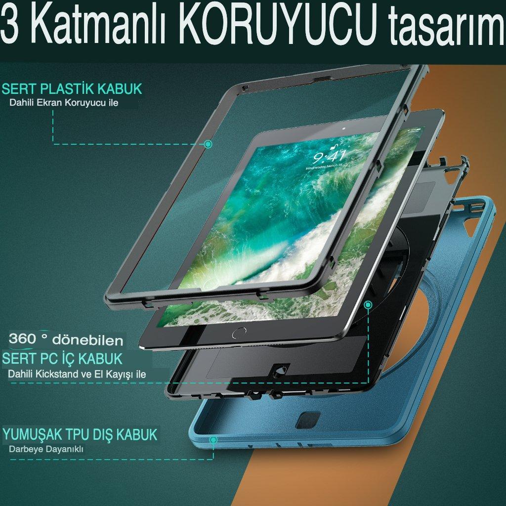 Five-E Apple iPad 6. Nesil 9.7 Inc (2018) Döner Standlı Omuz Askılı Darbeye Dayanıklı Armour Boxbox Kılıf A1893 A1954
