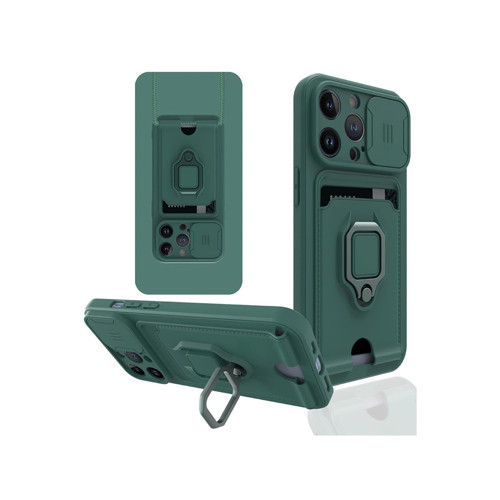 Apple İphone 13 Pro Kılıf Zuma Kartvizitli Yüzüklü Silikon - Yeşil