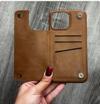 Apple iPhone 13 Pro Max Kılıf, Kart Yuvalı Lüks Kapaklı Deri Cüzdan, Telefon Kılıfı Açık Kahve