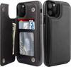 Apple iPhone 13 Pro Max Kılıfı, Kart Yuvalı Kapaklı Deri Cüzdan, Destek Stantlı Telefon Kılıfı, Siyah