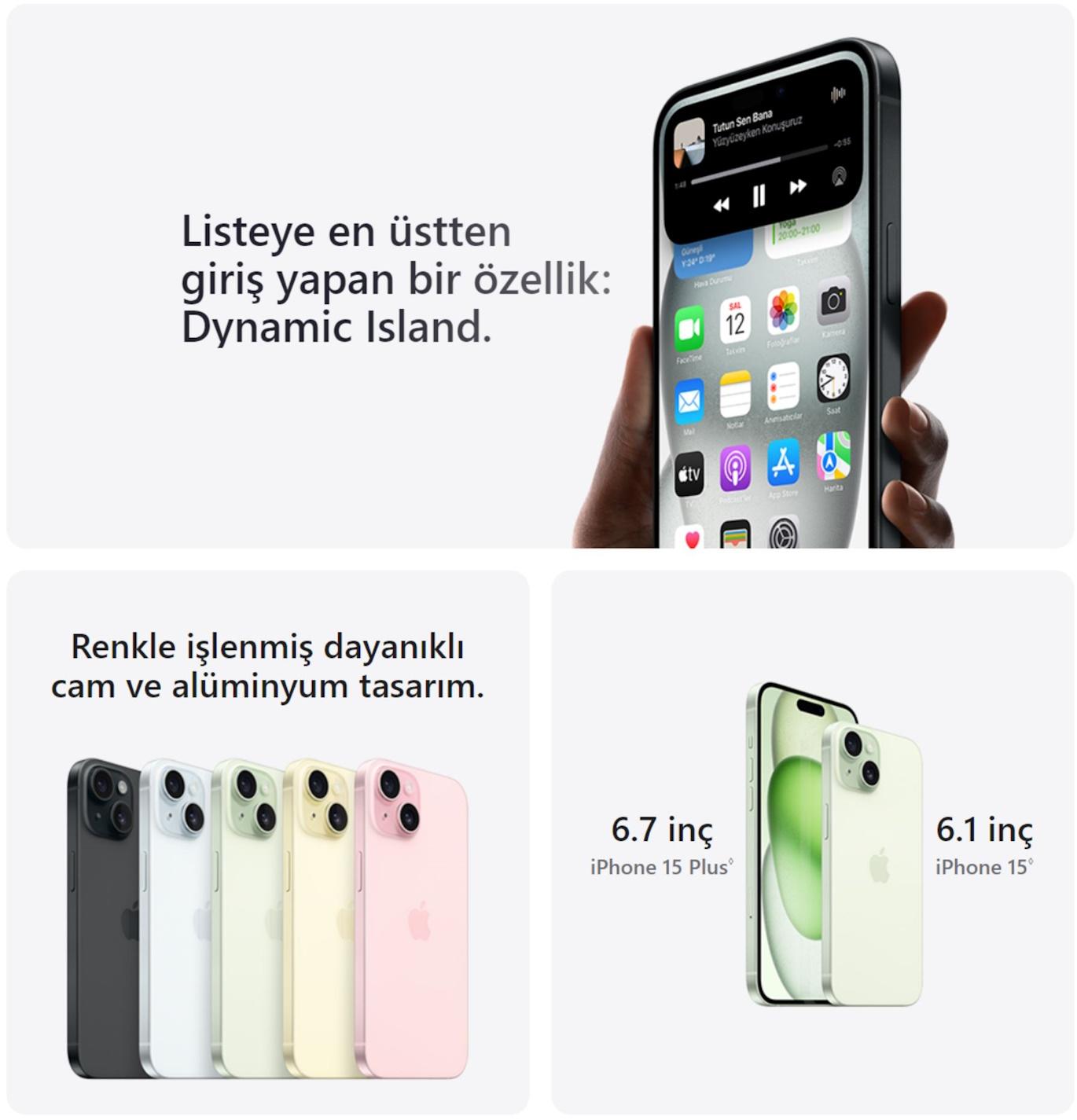 iPhone 15’in yenilikçi tasarımında, tamamen renkle işlenmiş bir cam arka yüzey bulunuyor. Cama özel çift iyon değişimi işlemi ve uzay endüstrisi standartlarında alüminyum kenarlar, iPhone 15’i inanılmaz derecede dayanıklı kılıyor.