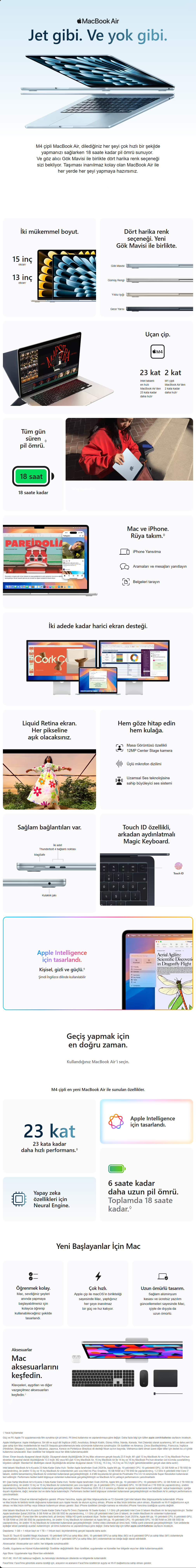 Apple MacBook Air 13' M4 Çip 10 Çekirdekli CPU 8 Çekirdekli GPU 16GB Bellek 256GB SSD Gümüş