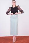 - Kesim: Uzun kalem etek (vücut hatlarını zarifçe sarar ve sofistike bir duruş kazandırır)