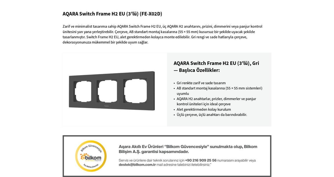 Aqara Anahtar Çerçevesi 3'lü Gri FE-X02D-G