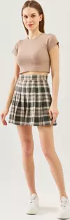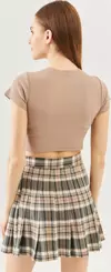 Aqua Kısa Kol Bisiklet Yaka Vücuda Oturan %100 Pamuklu Kaşkorse Esnek Crop Bluz