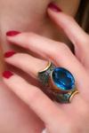 Aquamarin taşlı el işi tasarım gümüş yüzük