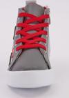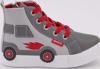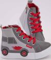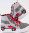 Gri, yüksek konçlu erkek çocuk sneakers ayakkabı. Ayakkabının dış yanlarında araba aplikesi vardır. Tekerlekler 3 boyutludur. Suni deriden yapılmıştır. Nemli bez ile temizlenebilir.