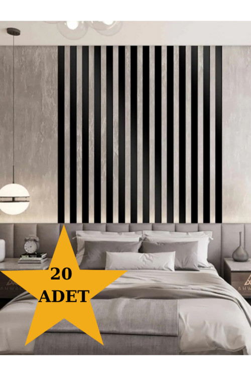 Arbecha Dekorasyon Ahşap Şerit Duvar Panelleri Duvar Çıtası Iskandinav Siyah (20 ADET, 50X5CM) Duvar Dekoru