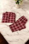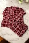 Kadın Büyük Beden Pamuklu Cepli Düğmeli Kırmızı Pijama Takım - Image 1