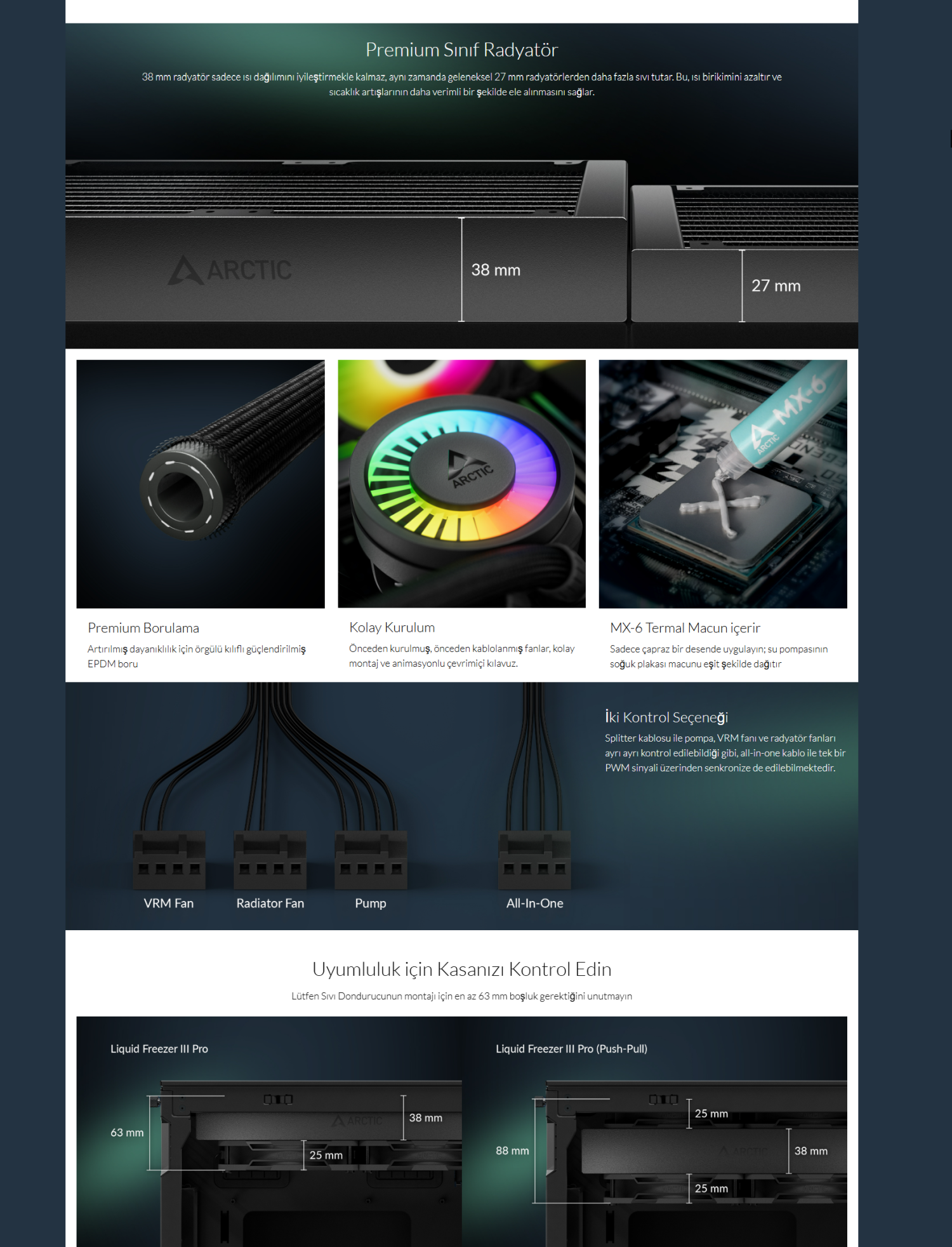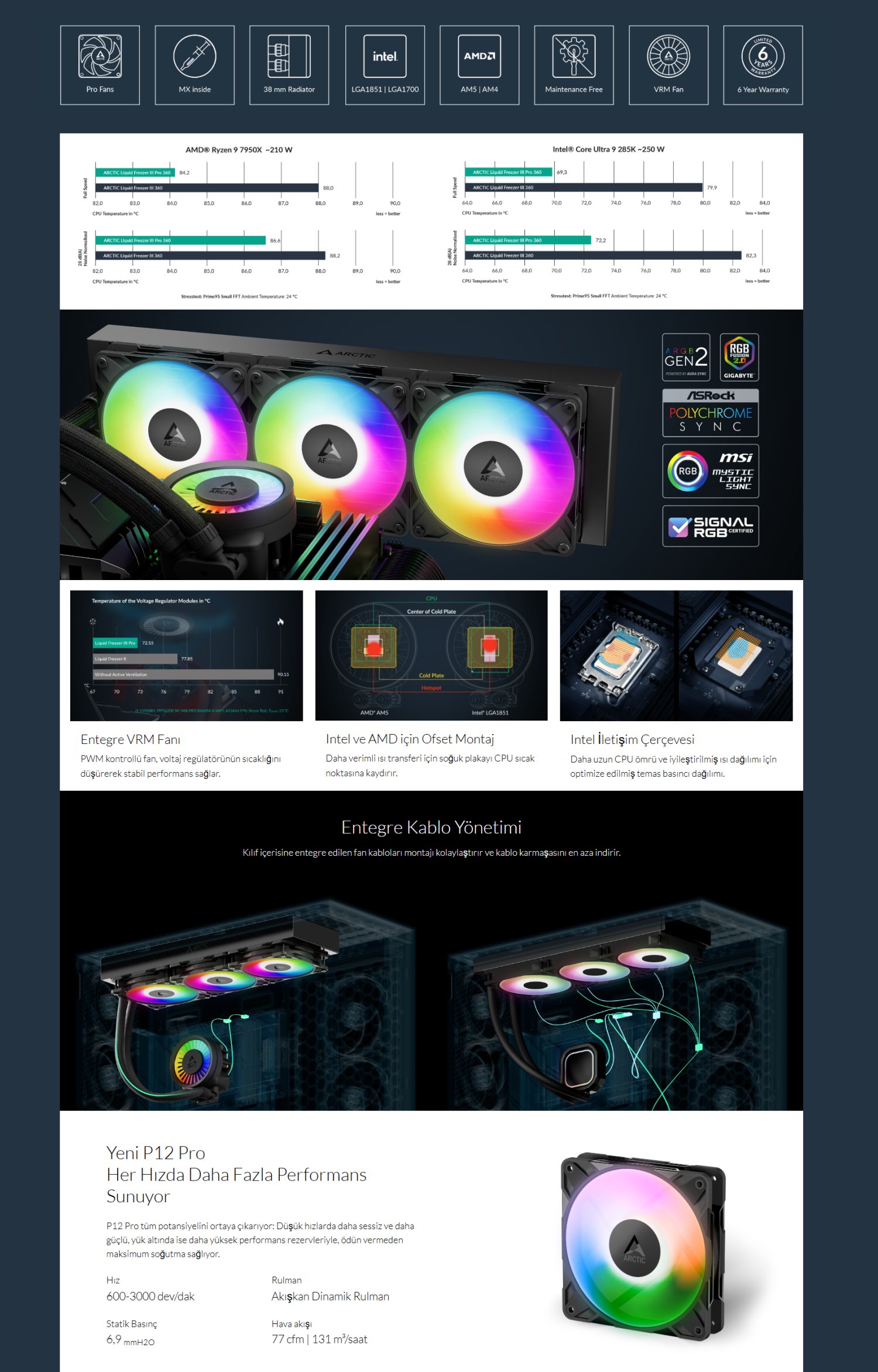 Arctic Liquid Freezer Iıı Pro 360 A-Rgb Intel / Amd Uyumlu, 360MM Radyatörlü, 3X12CM P12 Pro A-Rgb Pwm Fanlı, Sıvı Işlemci Soğutucu Siyah (ACFRE00184A)