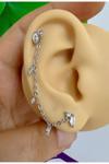 Ares Collection Zirkon Taşlı 1 Adet Zincir Bağlantılı İkili Kıkırdak Kulak Memesi Uyumlu Piercing Küpe