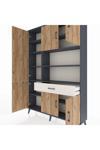 Arges Dolap 10 Raflı Tek Çekmeceli 6 Kapaklı 132x30x195 Antrasit-Çam/Aytaşı