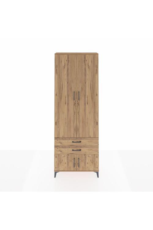 Arges Dolap 4 Raflı 2 Çekmeceli 4 Kapaklı 88x30x243 Çam-Çam