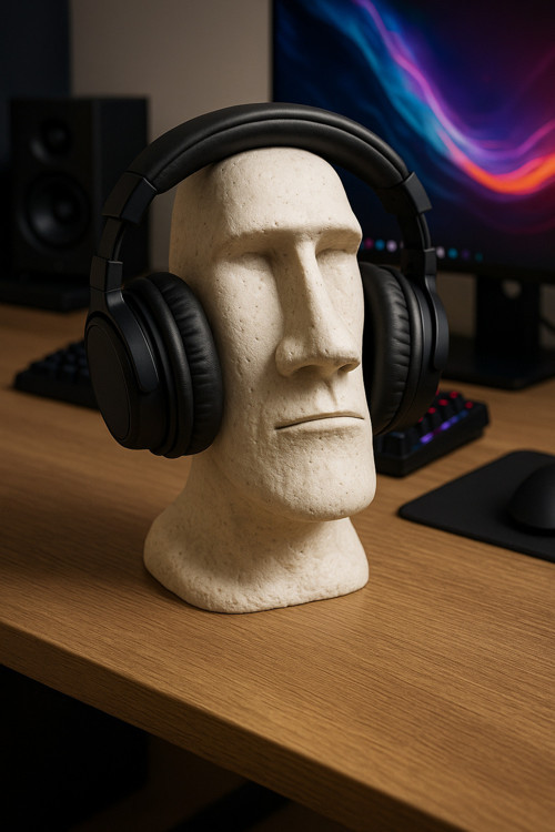 Argkristal Moai Heykel Kulaklık Standı | Minimalist Masaüstü Organizer Krem Kirli Beyaz