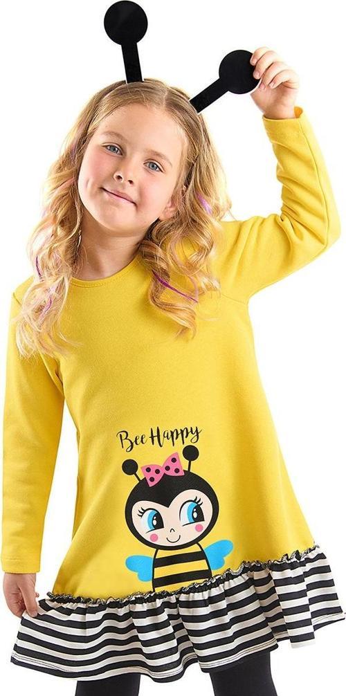 Kalın, pamuklu, kışlık sweatshirt kumaşından kız çocuk elbise.Elbisenin etek uçları çizgili kumaştan fırfır detaylıdır. Tüm Denokids ürünleri çocuk güvenliği düşünülerek üretilmiştir ve iğne dedektörlerinden geçirilmiştir.