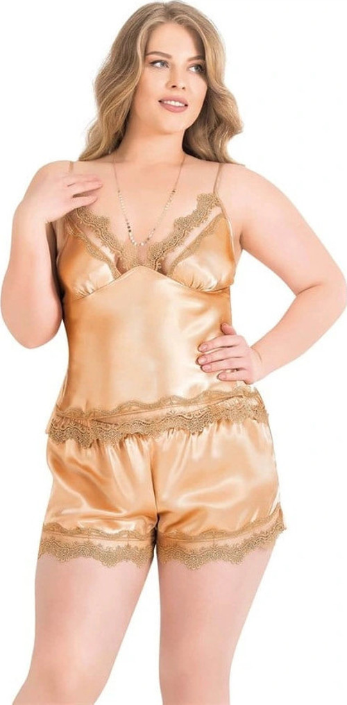 Arias Closet Büyük Beden Gold Saten Babydoll Şort Takımı