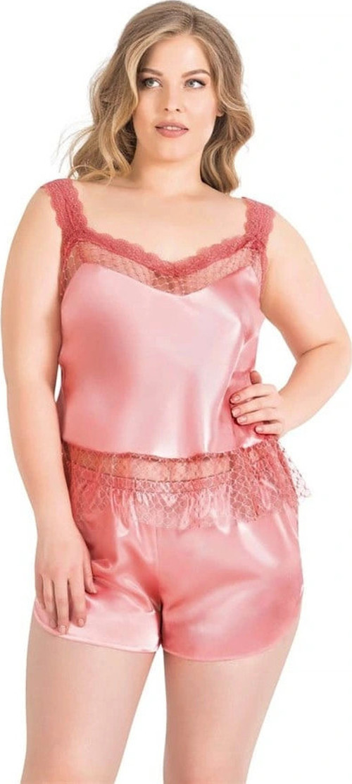 Arias Closet Büyük Beden Mercan Saten Babydoll Şort Takımı