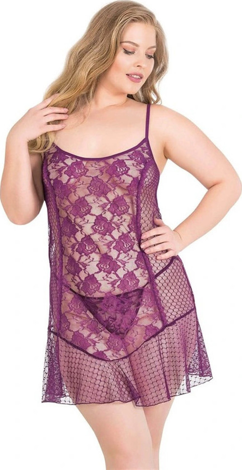 Arias Closet Büyük Beden Mor Kısa Tül Gecelik – Şık ve Rahat Tasarım
