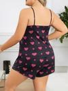 ?? Sade Şıklıkla Gelen Konfor: Büyük Beden Siyah Kalp Desenli İnce Askılı Pamuklu Şortlu Pijama Takımı ✨