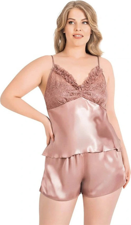 Arias Closet Büyük Beden Vizon Saten Babydoll Şort Takımı
