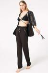 Hepici Arias Closet Dantelli Sabahlık Balensiz Desteksiz Dolgusuz Yaka Detaylı Sütyen ve Pantolon Pijama 3'lü Takım
