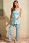 Amora Aria's Closet İp Askılı V Yaka Kadın Çiçek Desenli Yazlık Dantel Detaylı Hamile Pijama Takımı Sabahl