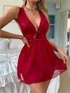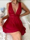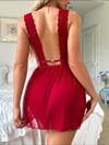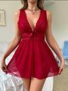 Kırmızı Dantel İşlemeli Tül Fantezi Gecelik, canlı kırmızı rengi ve zarif dantel detaylarıyla özel anlarınıza çekicilik katar. Hafif tül kumaşı vücudu nazikçe sararken, feminen ve baştan çıkarıcı bir siluet oluşturur.