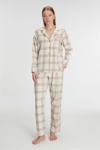 Senfoni Kadın Düğme Yaka Uzun Kol Pamuklu Pijama Takımı 6021 -1 Adet Bej-S - M - Image 1