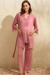 Gecem Lohusa 3'Lü Pijama Takımı Gri - Mor M - Image 1