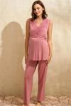 Aria's Closet Sıfır Kol V Yaka Kadın Viskon Düz Yazlık Uzun Dantel Detaylı Hamile Pijama Takımı Saba - Image 1