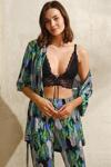 Hepici Arias Closet Viskon Yaprak Baskılı Sabahlık Balensiz Desteksiz Dolgusuz Dantelli Bralet Sütyen ve Pantolon Pijama 3'lü Takım
