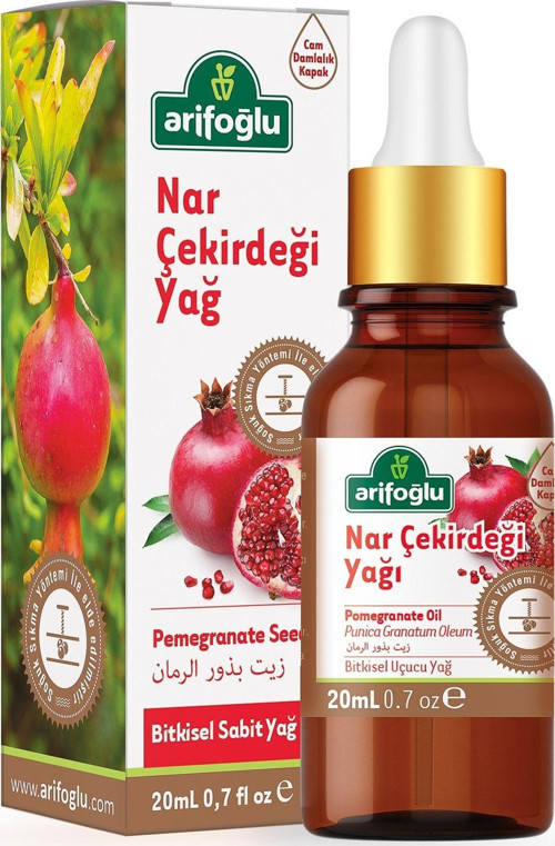 Nar (Punica granatum) Ilıman iklim meyvesidir. Haziran temmuz aylarında kırmızı, nadiren beyaz çiçekler açan, kenarları tüylü yaprakları olan bir meyvedir. Ayrıca nar, kuvvetli bir kök sistemine sahip olan çok yıllık, 2-5 metre yüksekliğinde, çalı formunda bir ağaçtır. Kabuğu kırmızı olan nar meyvesi yuvarlak küremsi biçimde, sert kabuklu, 5-8 cm çapındadır. Birçok toprak ve iklim türünde nar yetiştiriciliği yapılması mümkündür. Genellikle sıcak bölgelerde yetiştirilmesine rağmen, birçok bölgeye adapte olabilir. Ülkemizde nar yetiştiriciliği daha çok Ege ve Akdeniz bölgelerinde yapılmaktadır. Asya, Orta Doğu, Akdeniz bölgesi boyunca bol miktarda yetişir. ELDE EDİLİŞ YÖNTEMİ: Nar çekirdeklerinden soğuk sıkma yöntemi ile elde edilmektedir. İÇİNDEKİLER: Nar Çekirdeği Yağı Pomegranate Seed Oil (Punica Granatum Oleum) Menşei: Türkiye UYARILAR: