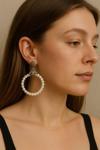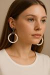 Zarif ve şık tasarımıyla öne çıkan kadın büyük halka küpe, plastik boncuk görünümlü detaylarıyla stilinize modern bir dokunuş katar.