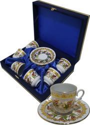 Kütahya Armada çini porselen fincan takımı 6 adet Altın yaldızlı Laleli çini desenli fincanı ve tabağından oluşur.
