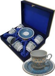 Kütahya Armada çini fincan takımı 6 adet Altın yaldızlı çini desenli fincanı ve 6 adet tabağından oluşur. kadife kutu içinde gönderilir Özel günlerinizde en Anneler günü, babalar günü, sevgililer günü, Mezuniyet hediyesi doğum günü, en güzel hediye. Kütahya porselen, Güral porselen fincan takımı fiyatları arasında en uygun olan modeldir. Osmanlı motifleri ile tasarlanmış Altın Yaldızlı fincan takımı
