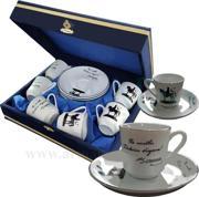 Kütahya Armada çini fincan takımı 6 adet Atatürk silüeti desenli fincanı ve 6 adet tabağından oluşur. kadife kutu içinde gönderilir Özel günlerinizde en Anneler günü, babalar günü, sevgililer günü, Mezuniyet hediyesi doğum günü, en güzel hediye. Kütahya porselen, Güral porselen fincan takımı fiyatları arasında en uygun olan modeldir. Atatürk motifleri ile tasarlanmış Altın Yaldızlı fincan takımı