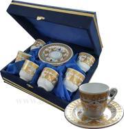 Kütahya Armada çini fincan takımı 6 adet Altın yaldızlı çini desenli fincanı ve 6 adet tabağından oluşur. kadife kutu içinde gönderilir Özel günlerinizde en Anneler günü, babalar günü, sevgililer günü, Mezuniyet hediyesi doğum günü, en güzel hediye. Kütahya porselen, Güral porselen fincan takımı fiyatları arasında en uygun olan modeldir. Osmanlı motifleri ile tasarlanmış Altın Yaldızlı fincan takımı